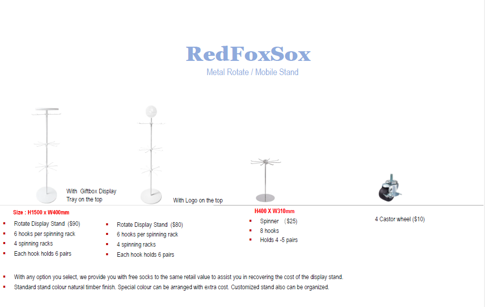 With any stand option you choose, we provide free socks equal to the stand’s retail value to help you recover the cost of the display.